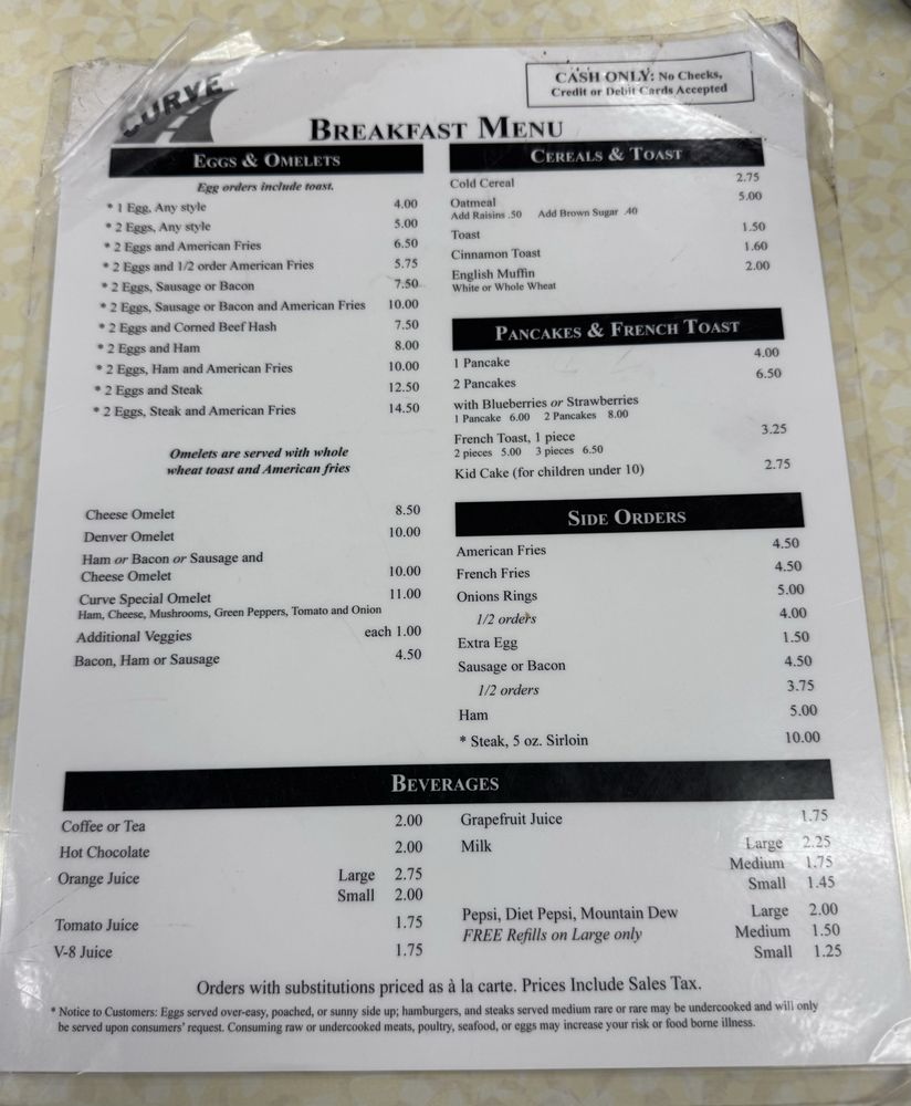 Expect genuine service and a cozy ambiance that celebrates the essence of classic American diners. Remember, it’s cash only, so bring your bills and prepare to celebrate the simple joys of comfort food at The Curve.