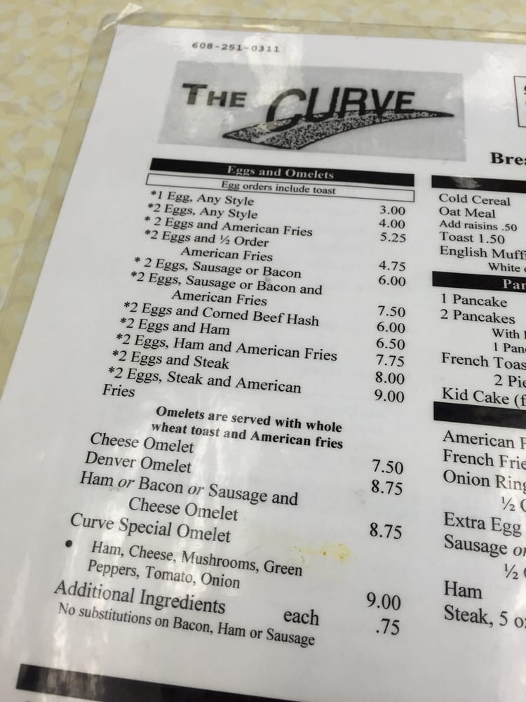 Welcome to The Curve, a charming diner nestled in Madison, WI, where nostalgia meets culinary simplicity. This beloved breakfast and brunch spot embraces a classic 1950s vibe, enchanting guests with its timeless decor and hearty fare. Here, you’ll find a menu filled with delicious egg-centric options, including the signature Cheese Omelet for just $8.00 or the mouthwatering Steak and American Fries Omelet served with whole wheat toast.